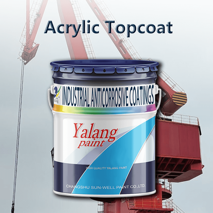 Acrylic topcoat is a one-component coating composed of acrylic resin as the base material, plus plasticizers, pigment fillers and various additives. It dries quickly and can be applied at low temperatures. One-component packaging, easy construction. The paint film has good adhesion, is durable, and has a certain Anti-corrosion performance, good waterproofing. It is easy to maintain, and has good gloss and color retention.